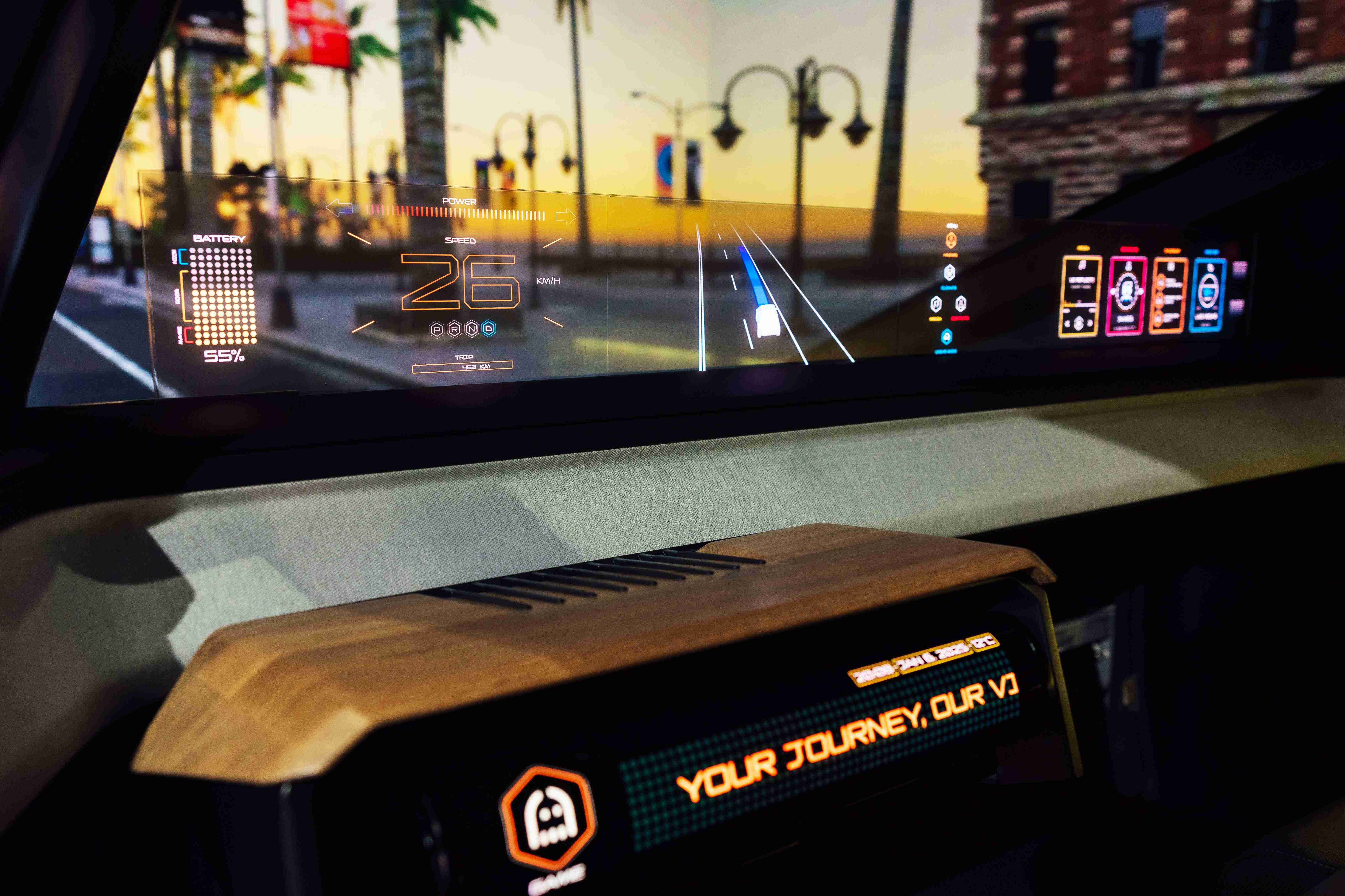 隐藏式智驾介面(Foldable Cruise Pilot)在不同模式下可以切换显示方式,,,在手动驾驶模式时,,,显示器可以在半收合状态下,,仍呈现所需资讯;自驾模式时,,显示器可以完全展开,,,满足不同的多媒体娱乐需求。。。。 尊龙集团Smart Cockpit 2025 在车头及车尾搭载合作伙伴Ennostar开发的互动式矩阵显示器(Interactive Matrix Display),,,,其突破传设计框架,,,利用优化的光源整合技术,,提供更高亮度与对比度的显示效果,,,,营造驾车者个性化风格并传递讯息。。