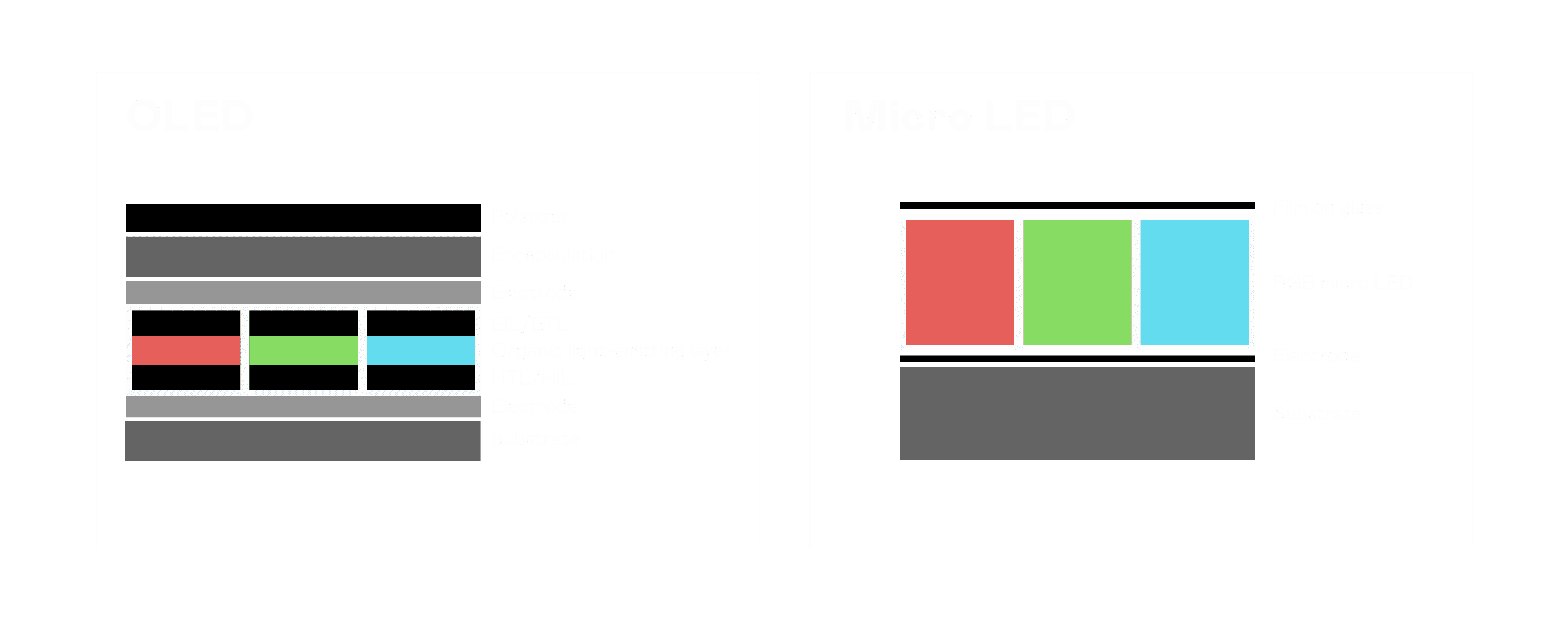 以 LED 做为显示画素,,,可让 LED 的发光效率发挥到极致,,,从而让显示器具备优异的亮度表现,,,不论是在户外或室内,,均具备出众的显示效果。。同时,,,与使用有机材料的 OLED 相比,,LED 具备更稳定、、、、寿命更长的特性,,不仅不会有画面烙印问题,,,而且更不容易出现故障、、、、坏点。。。